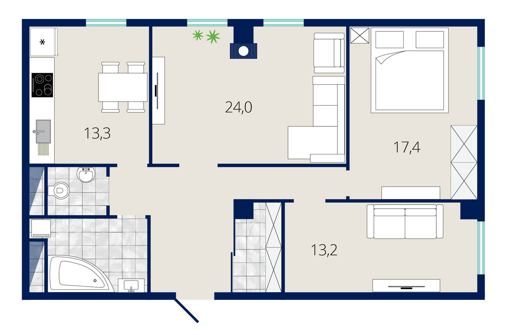 3-комнатной квартиры улучшенной планировки 91.8 кв. м